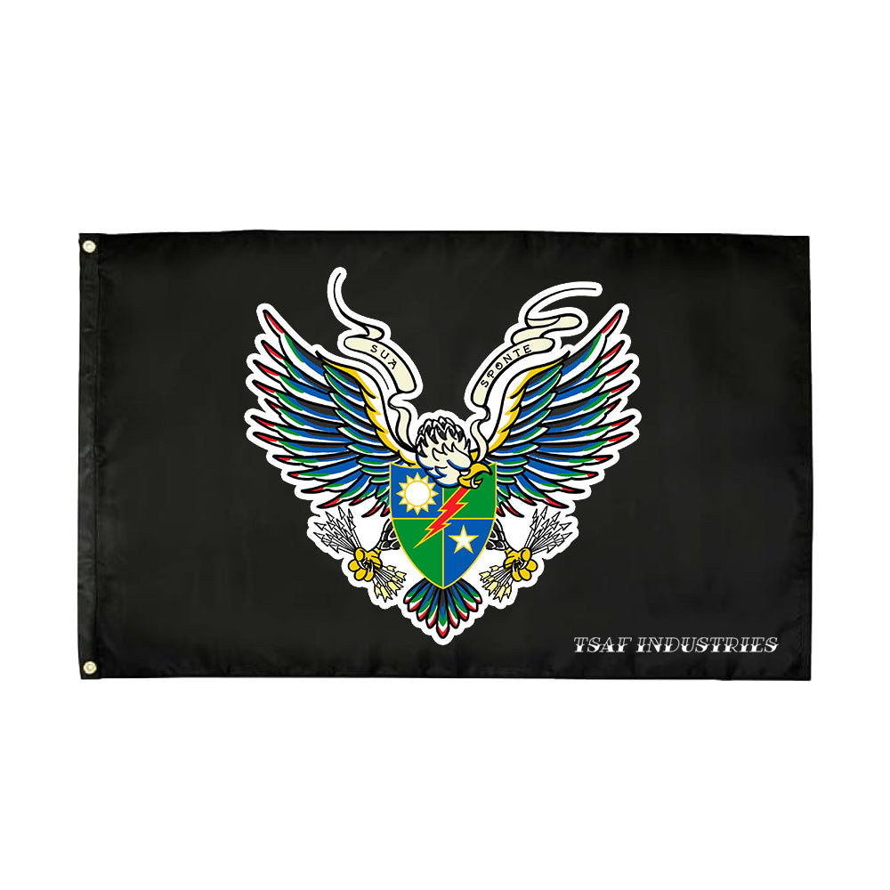 Ranger War Eagle (no Olive Branches needed) - Double sided flag. Made from 100% durable polyester, this flag is designed to withstand the elements while maintaining vibrant colors and high visibility. This flag is perfect for a variety of settings, whether it’s for your home, yard, or during special events. Its lightweight material makes it easy to fly, while the reinforced edges ensure sturdy construction and longevity.