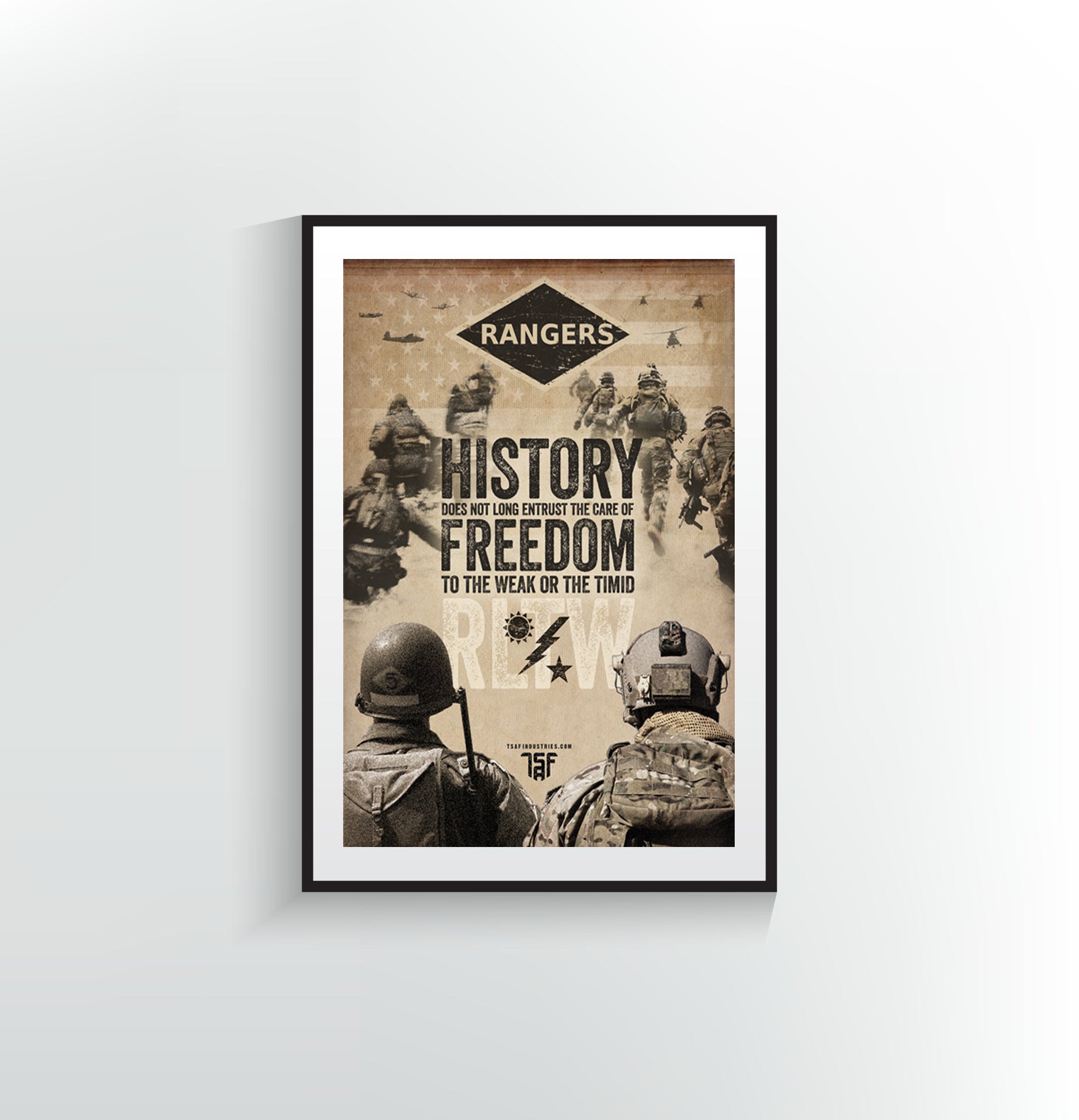 Ranger History and Freedom Print. Made with museum-grade paper (175gsm fine art paper). Each poster is printed with top-tier pigmented archival inks for a stunning end result.